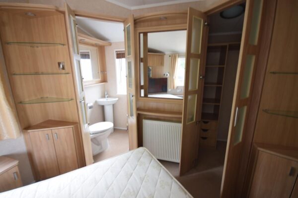 Down the hall you have 2 large bedrooms; a twin room with single beds (could fit a double) plus wardrobes, lockers and vanity unit. The master bedroom is quite literally the best layout ever and has everything you could ever ask for! A large double bed with storage underneath and behind the headboard, plus vanity unit, a walk in wardrobe AND an en-suite with toilet and shower!