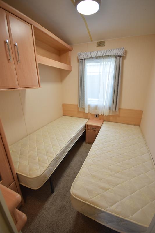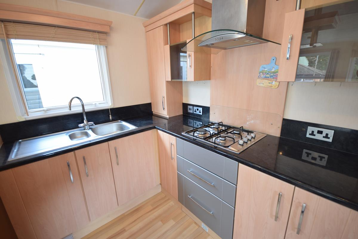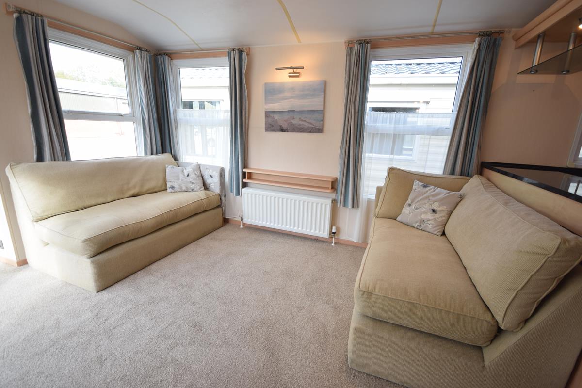 The living space is a very good size, and with front opening doors you can put your own suite in if you wish. It has plenty of fitted storage options and the kitchen is very impressive with a modern look, breakfast bar, space & plumbing for washing machine/ dishwasher, plus integrated fridge and freezer with space for microwave too.