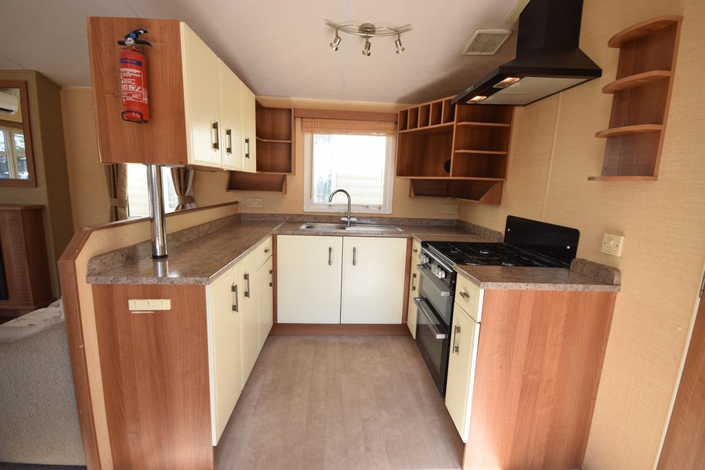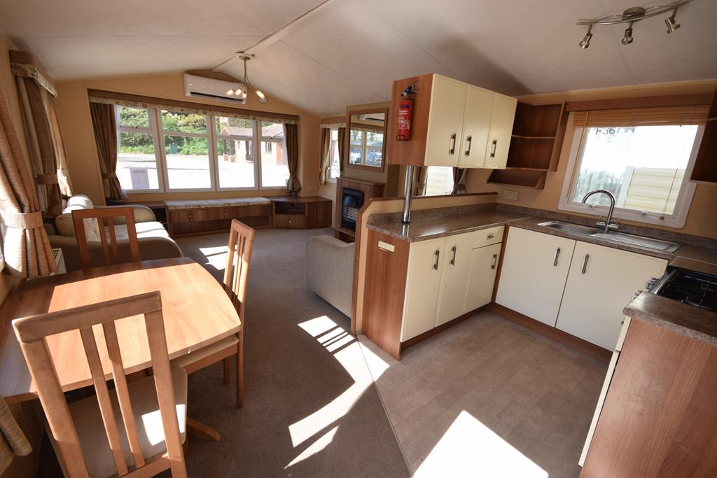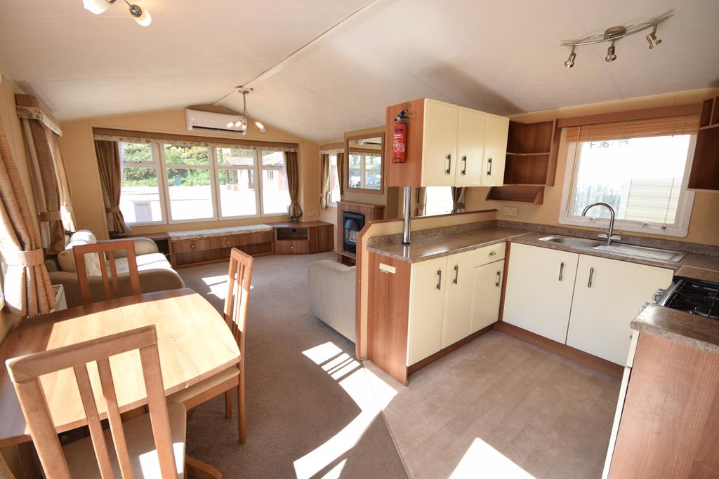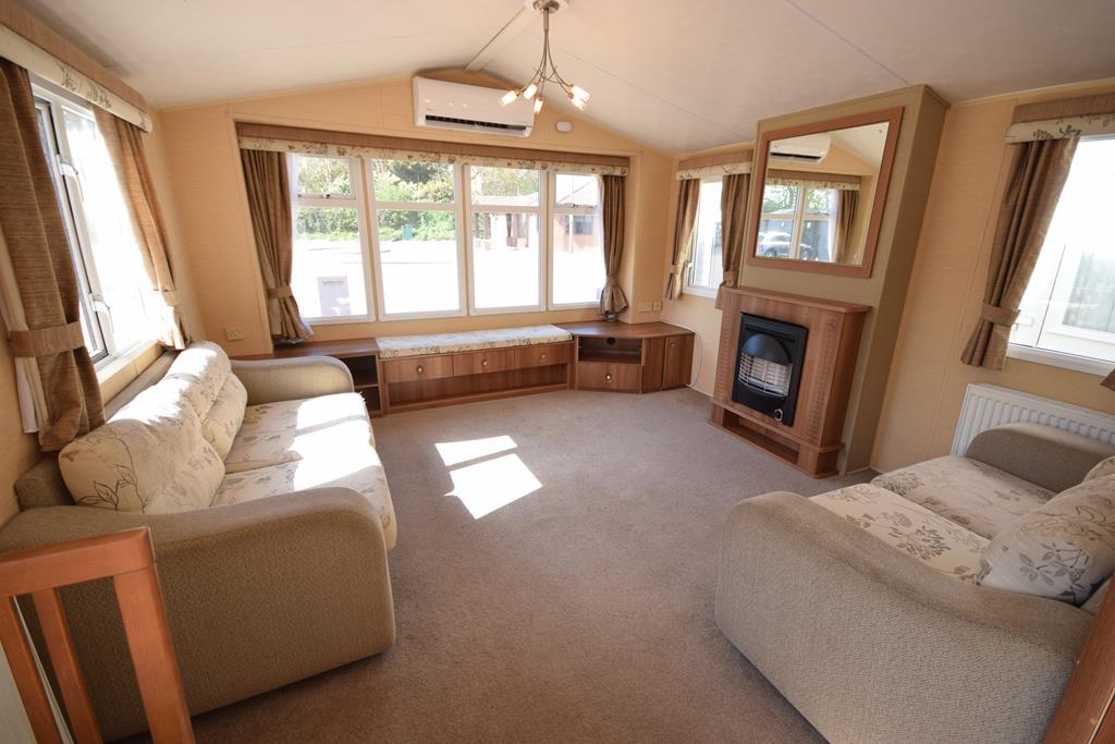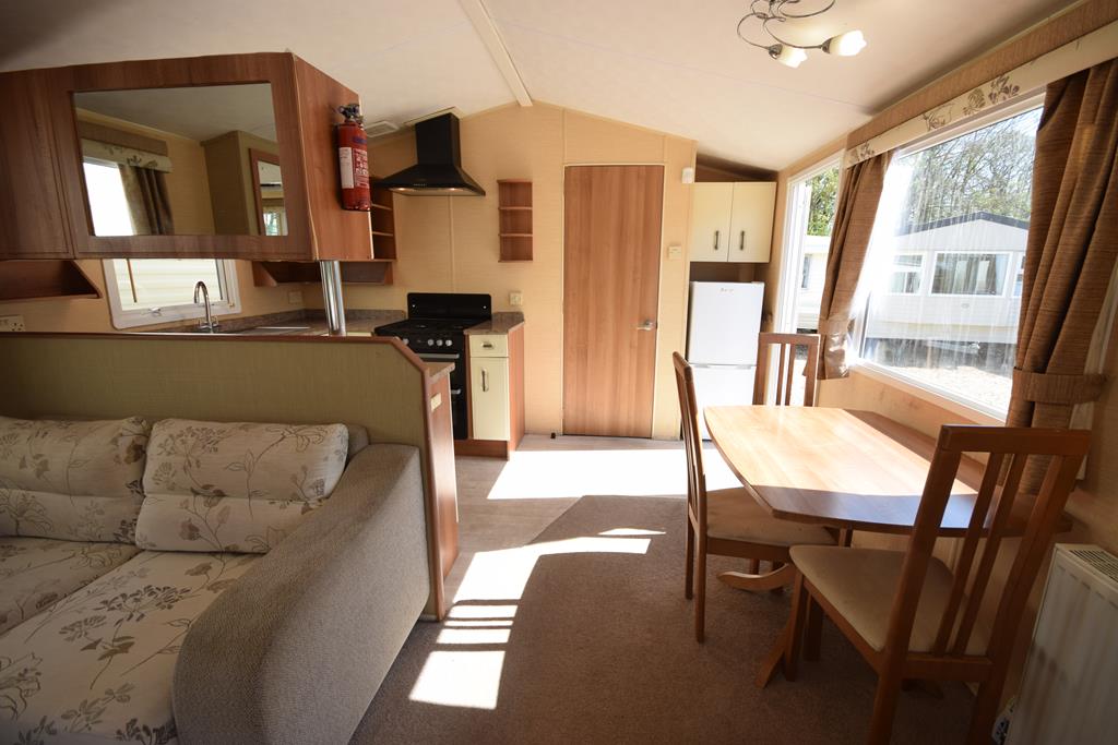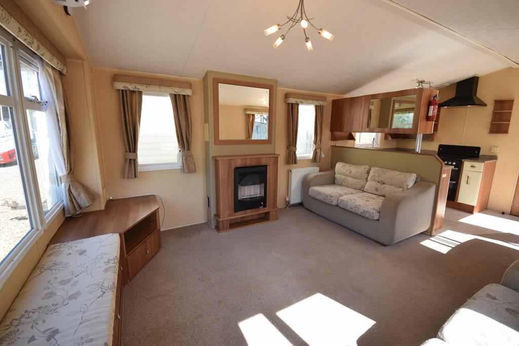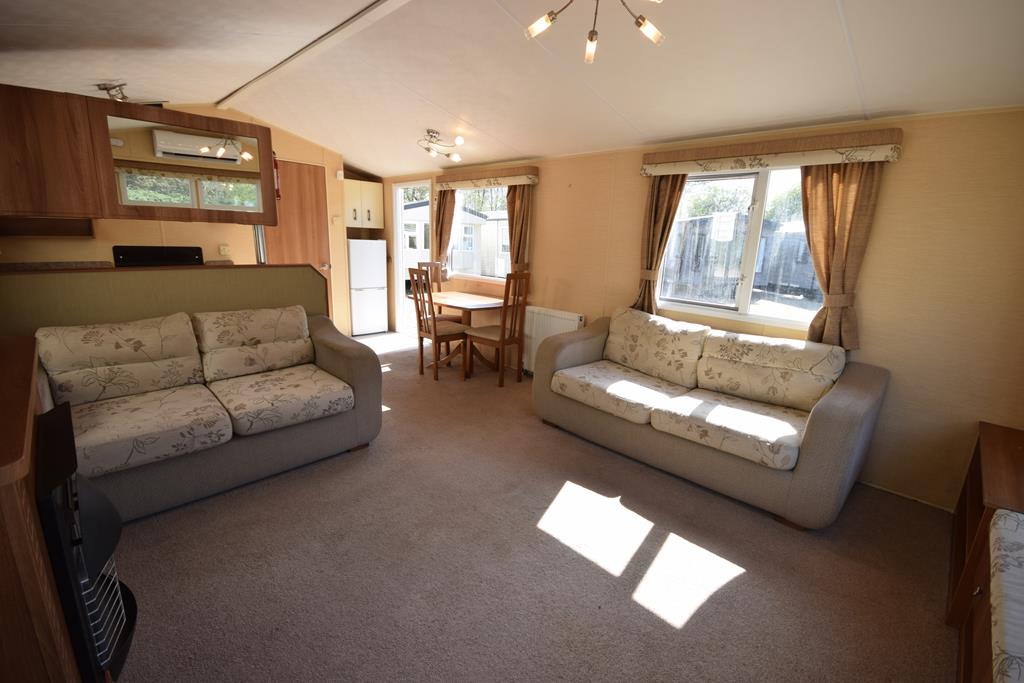 The living space is a wonderful open plan room, incorporating a generous sized lounge with a comfy freestanding suite, ample storage and electric fireplace, with a functional kitchen and dining space with dining suite and fully fitted kitchen including all appliances.