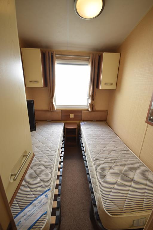 Down the hall you have 3 good sized bedrooms; two twin rooms with two single beds, wardrobes and lockers. The master bedroom is very impressive with lift up storage bed, lots of storage, drawers, fitted wardrobes and en-suite door leading to the main bathroom.